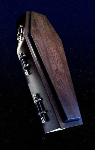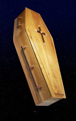"While working on the commemorative coffins," Bud says, "I thought it would also be interesting to build my own full-sized coffin as a work of art, exhibit it with the commemorative coffins, and then eventually be buried in it. That's when I realized that everybody deserves a distinctive, personalized coffin that is elegantly designed, meticulously crafted, and one of a kind."